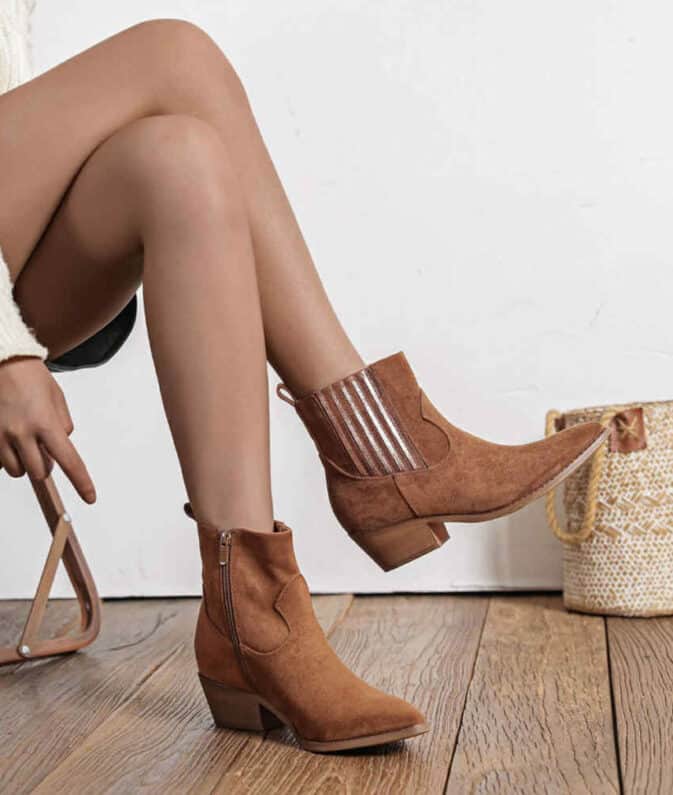 Cowboy Style ankle boots with an inner zip, midi heal and sparkle decor.