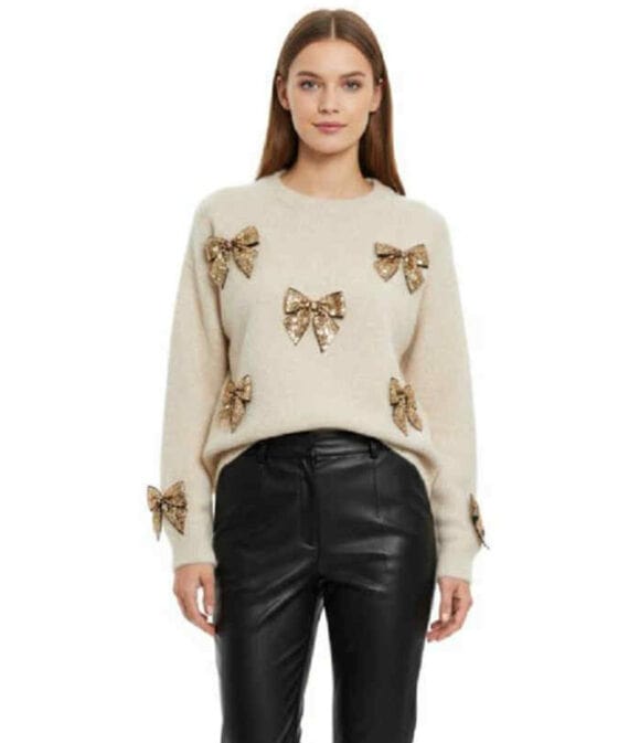 Oversized top in a quality knit.  3/4 button sleeves with diamante embellishment and a high neckline.
